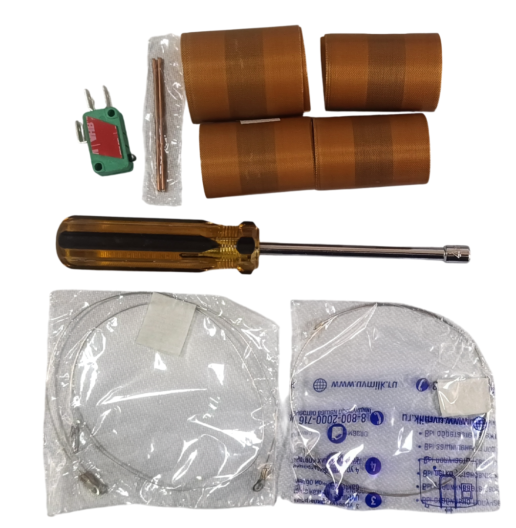 Набор для обслуживания запайщика iSealer. В комплекте: отвертка торцевая, 4 тефлонове ленты, 2 шт. нагревателя (лезвие), микропереключатель.